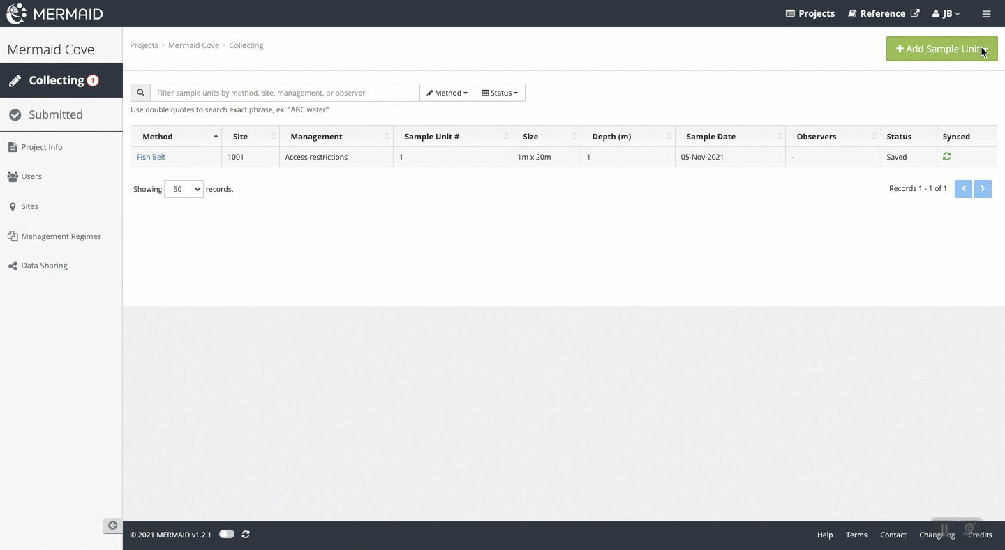 When you’re ready to enter new data for a project, click “Add Sample Unit” at the top right of the Collect page and select a sample unit.