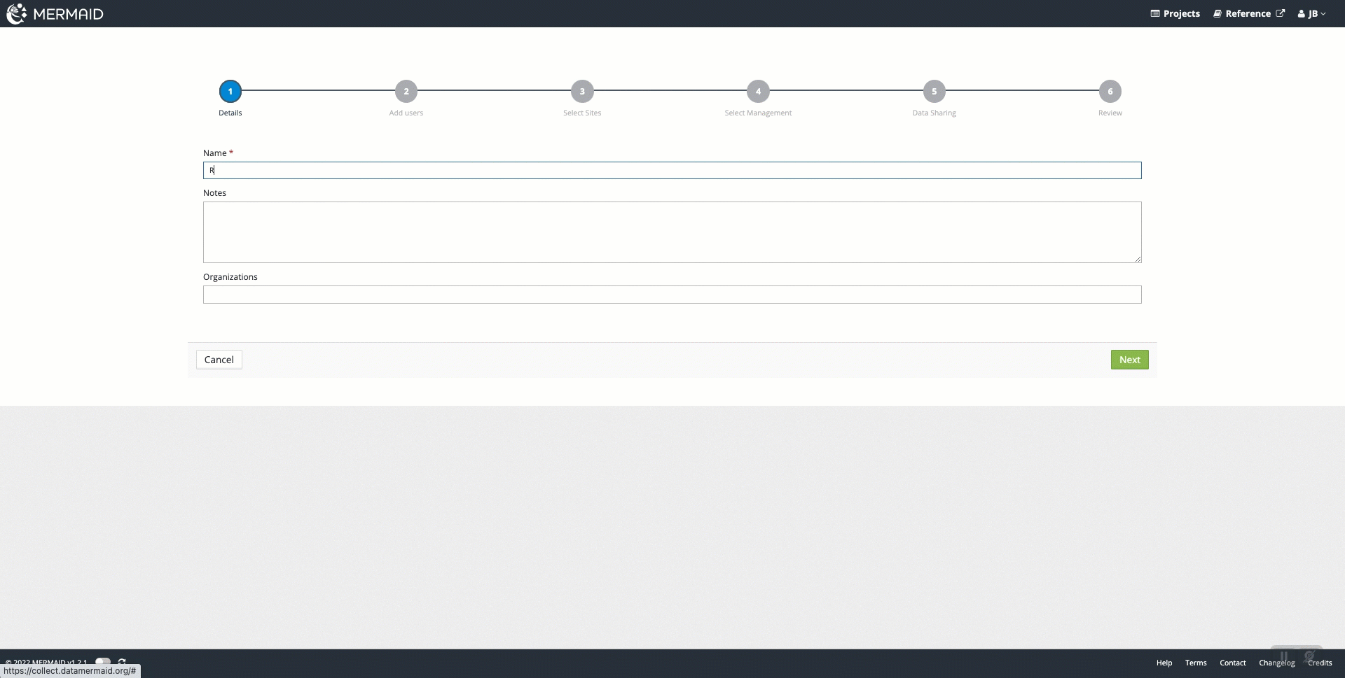 If you are creating a project to practice using MERMAID or train others, you can indicate this with the checkbox at the bottom of the page. Data added for a test project will be omitted from all public reporting.